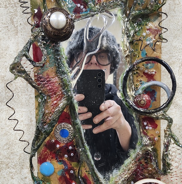 In this intersection of self-portraiture and mixed media, I invite viewers to confront their own reflections. I want them to feel the weight of their thoughts, the vibrancy of their emotions, and—most importantly—the power of their voices. I believe that through art, we can foster understanding, empathy, and healing; we can dismantle the stigmas surrounding mental health and engage in vital conversations about our world.” – Mariann Taubensee, Artist.